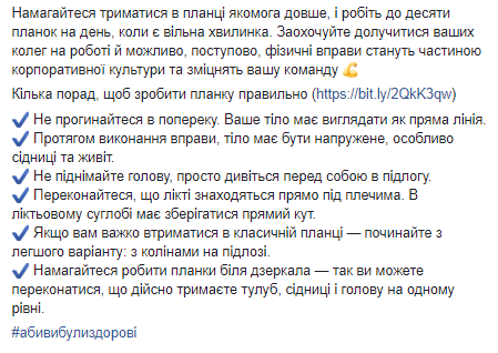 Ульяна Супрун рассказала о некоторых нюансах выполнения планки: