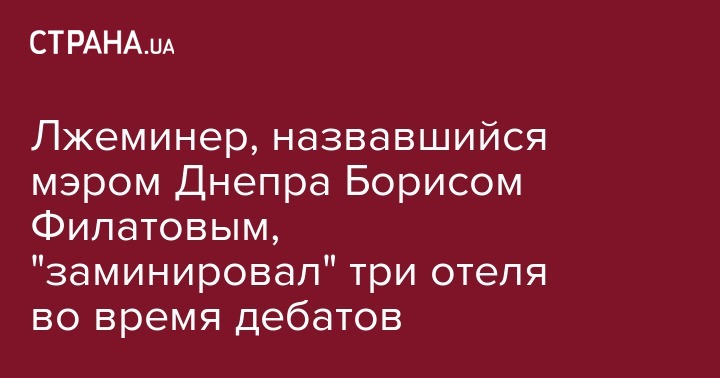 Большинство сообщений об угрозах взрыва были так или иначе с политическим подтекстом и касались будущих выборов. Как мы узнали из собственных информированных источников в МВД, вчера вечером администратор отеля "Алфавит" позвонил на спецлинию "102" и сообщил, что его гостиница, расположенная рядом с прокуратурой Киева, может быть заминирована. Администратор рассказал, что сообщение о минировании пришло электронную почту отеля. Отправитель подписался мэром Днепра Борисом Филатовым и указал в своем письме-угрозе, что как только файл с письмом был открыт сработал таймер и пошел обратный отсчет времени до взрыва. Во время осмотра полицией никаких подозрительных взрывоопасных предметов не выявили, но эвакуацию 340 постояльцев по решению администрации все же провели.