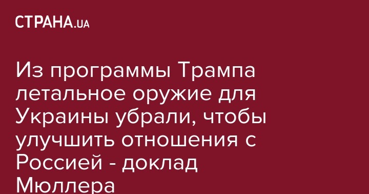 Из предвыборной программы Дональда Трампа республиканцы исключили пункт о предоставлении Украине летального оружия - чтобы сохранить отношения США и РФ. Об этом идет речь в докладе Мюллера о вмешательстве РФ в американские выборы, пишут "Украинские Новости"