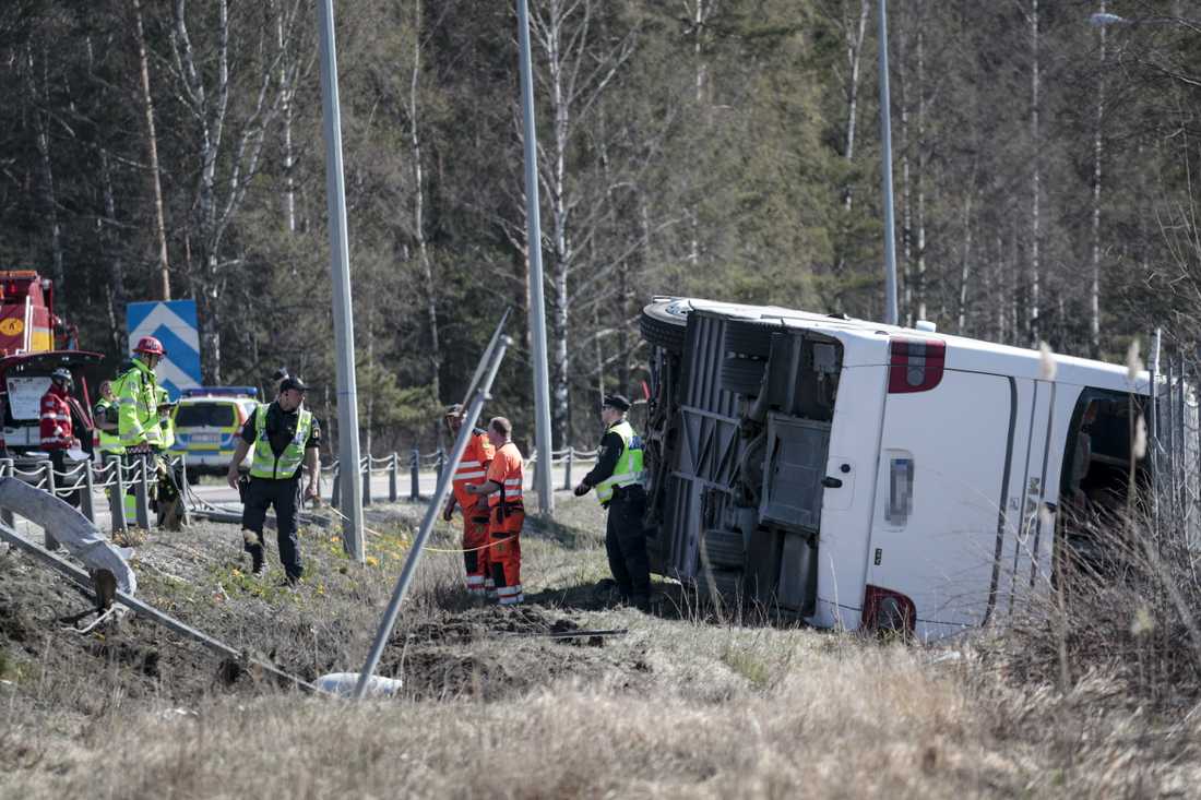 На момент аварии в автобусе было около 29 человек. Они ехали из Осло в Стокгольм. В какой-то момент автобус съехал с дороги в кювет и перевернулся. Причины аварии пока не сообщаются.