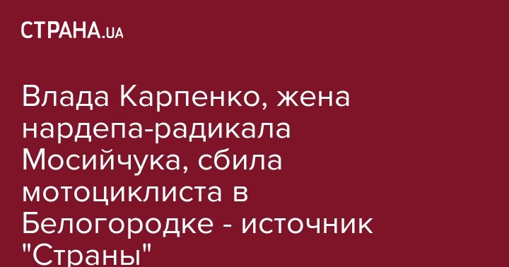 Влада Карпенко, жена нардепа-радикала Мосийчука, сбила мотоциклиста в Белогородке - источник "Страны"