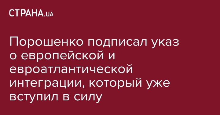 Порошенко подписал указ о европейской и евроатлантической интеграции, который уже вступил в силу