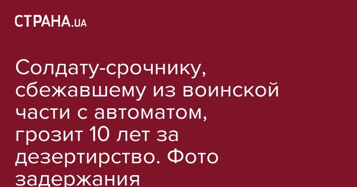 Солдату срочной службы, Артему Григоренко, который дезертировал с оружием из воинской части в Волынской области и был задержан, грозит до 10 лет тюремного заключения. Об этом сообщает пресс-служба Государственного бюро расследований.