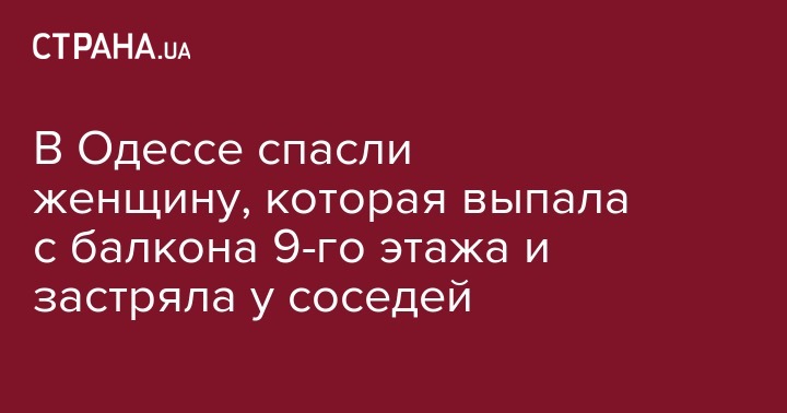 В Одессе пожилая женщина выпала с балкона 9-го этажа и застряла на крыше балкона своих соседей. Об этом сообщается на сайте ГСЧС области.