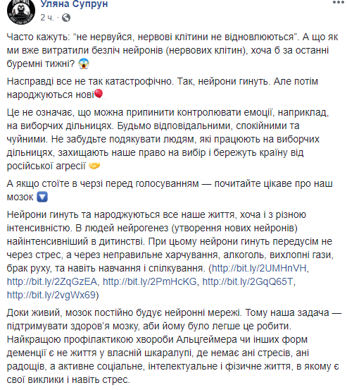 И.о. министра здравоохранения Ульяна Супрун развеяла известный миф, что нервные клетки не восстанавливаются. Об этом она сообщила в Facebook.