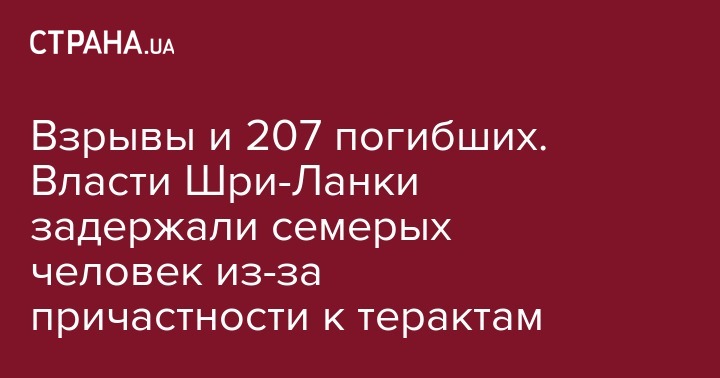 Власти Шри-Ланки задержали семерых человек по подозрению в причастности к террористическим атакам, в результате которых погибли 207 человек. Об этом сообщает местный новостной портал News 1st.