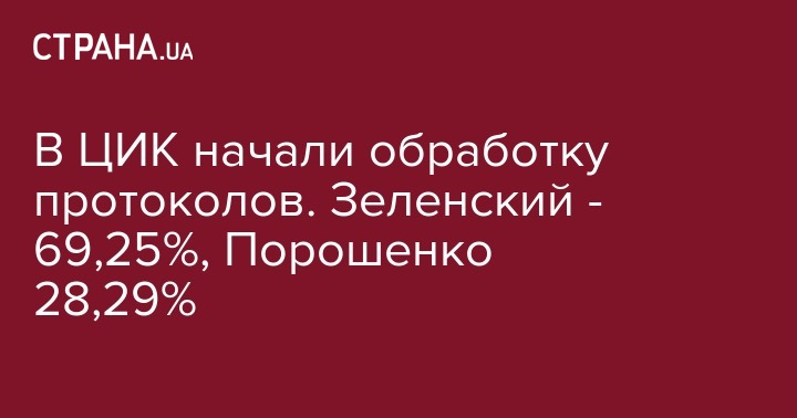 В ЦИК начали обработку протоколов. Зеленский - 69,25%, Порошенко 28,29%