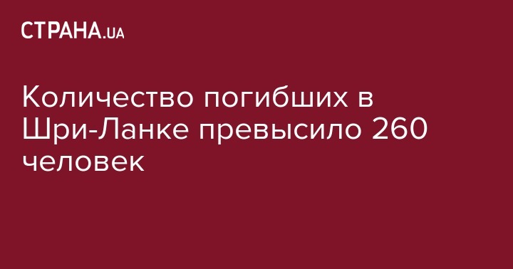 Количество жертв в результате терактов на Шри-Ланке достигло 262 человек. Еще 452 человека были ранены во время взрывов, которые прогремели в стране в день католической Пасхи. Об этом сообщает телеканал News 1 st, передает Интерфакс