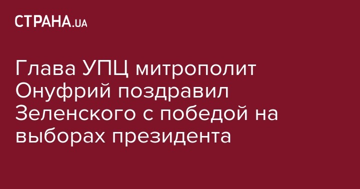 Глава УПЦ митрополит Онуфрий поздравил Владимира Зеленского с уверенной победой на выборах президента. Об этом сообщается на сайте УПЦ