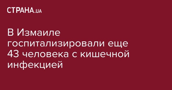 В Измаиле в пятницу, 24 июня, госпитализировали еще 43 человека с симптомами кишечной инфекции. Об этом на своей странице в социальной сети Facebook сообщил мэр города Андрей Абрамченко.