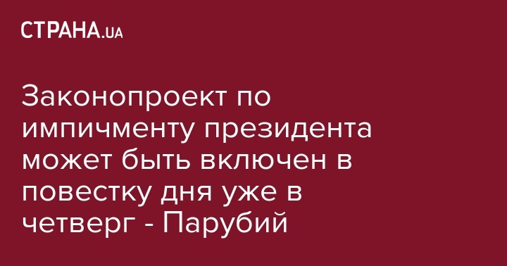"Если законопроект о президенте, который предлагают оппозиционные фракции и который они презентуют, комитет рассмотрит в среду, то уже в четверг мы сможет включить его в повестку дня сессии для принятия решения. Фактически мы сможем начать работу над этим законом уже в четверг", - сказал Парубий.