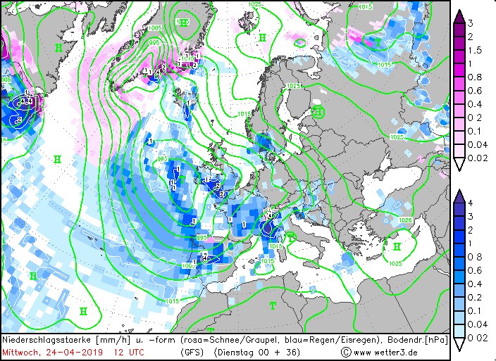 "Циклон - над Атлантикой, антициклон - вблизи Финляндии. Противостояние этих мощных атмосферных образований делает ветер сильным в большинстве европейских стран - осторожно! Дожди, как видно по карте, пройдут 24 апреля преимущественно на западе Европы, в Украине будет сухо и солнечно", - написала Диденко.
