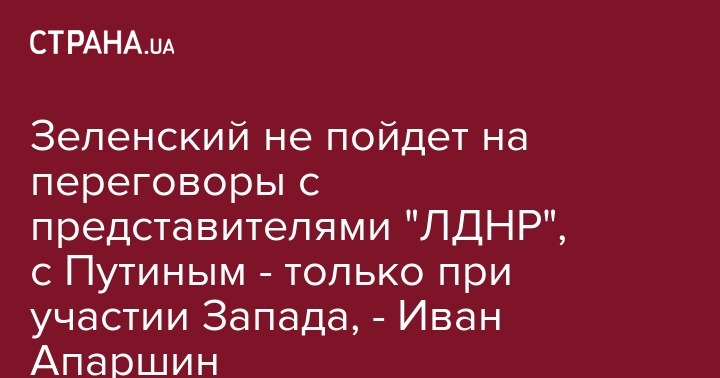 Зеленский не пойдет на переговоры с представителями "ЛДНР", с Путиным - только при участии Запада, - Иван Апаршин