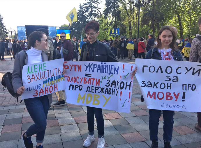 Сегодня, 25 апреля, возле Верховной Рады проходит акция в поддержку принятия закона об украинском языке, который сегодня рассматривают нардепы.