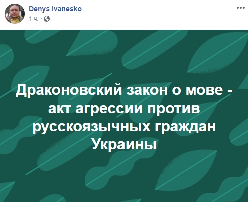 Журналист Денис Иванеско возмущен: "Драконовский закон о мове - акт агрессии против русскоязычных граждан Украины".