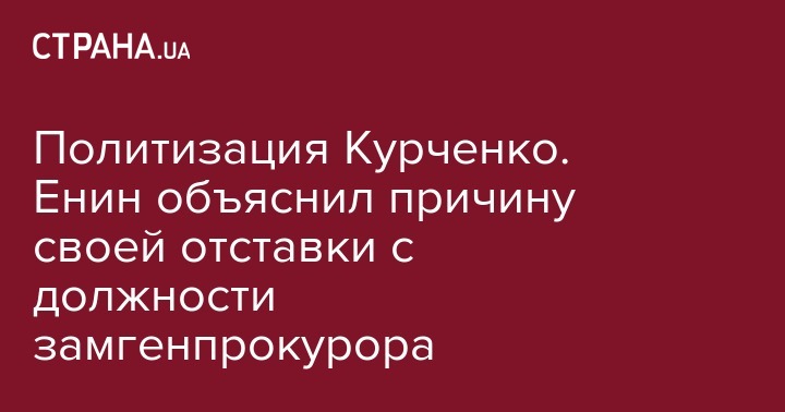 Заместитель генерального прокурора Украины Евгений Енин заявляет, что его уход с этой должности связан, в том числе, с политизацией расследования уголовного дела беглого украинского бизнесмена Сергея Курченко, передает "Интерфакс-Украина".