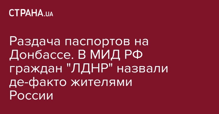 Российские паспорта выдаются жителям оккупированного Донбасса "как ответная мера на действия украинских властей, сделавших их лицами без гражданства и объявивших своему населению бойкот". Об этом заявила на брифинге официальный представитель МИД России Мария Захарова и добавила, что последней каплей стало неучастие "ЛДНР" в выборах президента Украины.