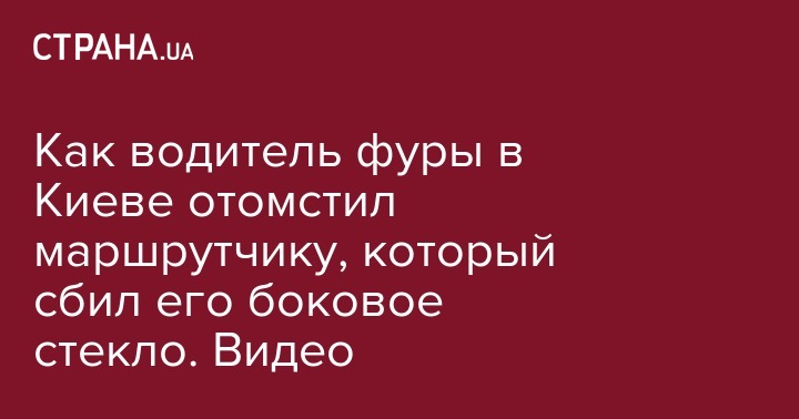 В четверг, 25 апреля, в Киеве водитель маршрутки задел боковое зеркало ехавшей рядом фуры, после чего водитель грузовика отомстил, сбив зеркало пассажирскому автобусу. Видео с регистратора публикует Киев Оперативный на своей странице в социальной сети Facebook.