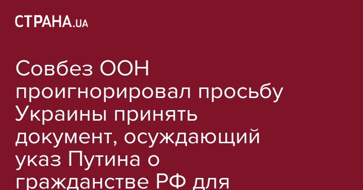 Совбез ООН проигнорировал просьбу Украины принять документ, осуждающий указ Путина о гражданстве РФ для Донбасса