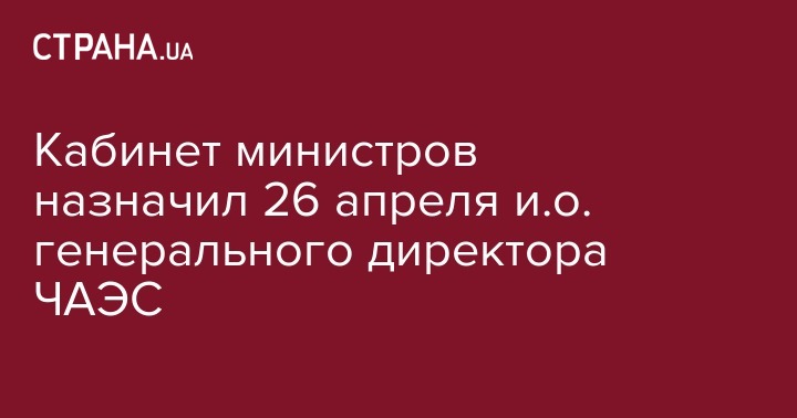 Кабинет министров назначил 26 апреля и.о. генерального директора ЧАЭС