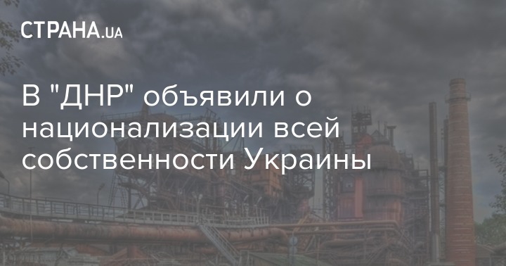 "Народный совет" самопровозглашенной ДНР проголосовал за "закон о национализации". Собственностью ""ДНР" объявлено все имущество Украины на ее территории вплоть до имущества железной дороги. Также в собственность "ДНР", согласно этому "закону", переходят все крупные промышленные предприятия региона, работающие на данный момент в украинской юрисдикции. Об этом сообщает "Газета.Ru".