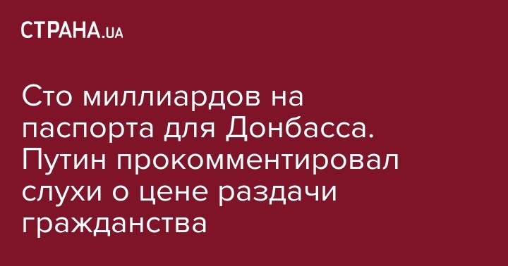 Президент России прокомментировал звучащие опасения по поводу того, что Россия якобы может потратить сто миллиардов рублей на предоставление гражданства жителям Донбасса.