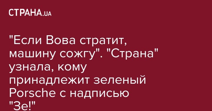 "Если Вова стратит, машину сожгу". "Страна" узнала, кому принадлежит зеленый Porsсhe с надписью "Зе!"