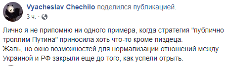 Жаль, но окно возможностей для нормализации отношений между Украиной и РФ закрыли еще до того, как успели отрыть", - считает журналист Вячеслав Чечило.