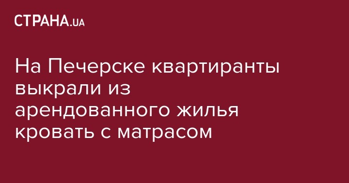 Как сообщает "Страна", в этом случае своровали не дорогую технику, а громоздкий предмет обстановки. По информации наших источников в правоохранительных органах, в полицию обратился 33-летний киевлянин с заявлением что на днях он сдал свою квартиру на Коновальца молодой паре, а когда наведался проверить как у них дела заметил, что из жилища исчезла его двухспальная кровать с дорогим ортопедическим матрасом.