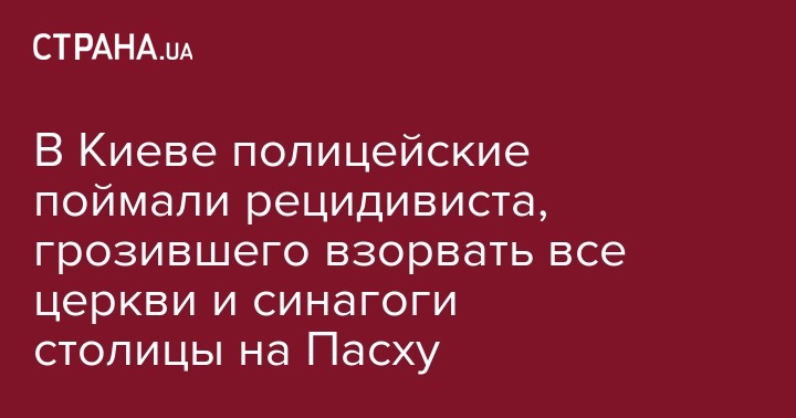 В Киеве правоохранители задержали мужчину, который заявил, что на Пасху будут взорваны все церкви и синагоги в столице Украины. Об этом сообщает пресс-служба Национальной полиции.