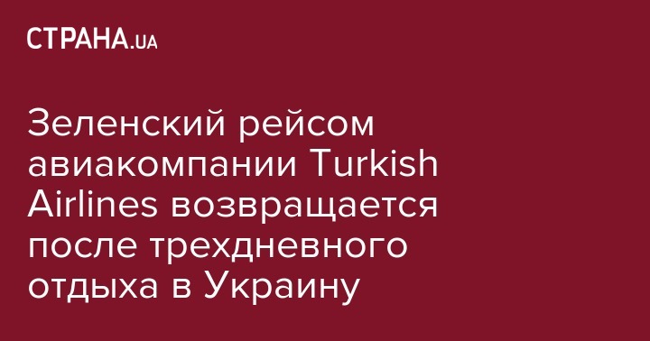 Зеленский рейсом авиакомпании Turkish Airlines возвращается после трехдневного отдыха в Украину