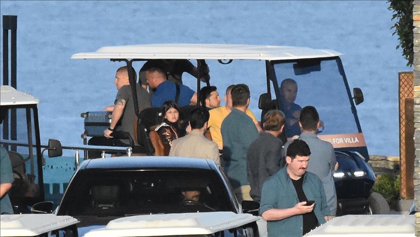 Как сообщает Anadolu Agency, Владимир Зеленский с семьей покинули пятизвездочный отель в квартале Гюверджинлик в понедельник, 29 апреля, утром. Его сопровождала личная охрана президента Эрдогана. На фото бодигарды одеты в серые штаны и голубые рубашки.