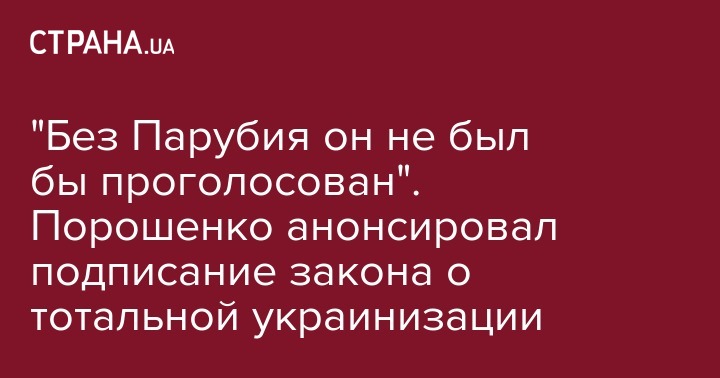 "Мы обеспечили квоты для украинского языка, украинской песни, украинской книги, украинской культуры в целом. Но нам точно не хватало закона о языке. И, к сожалению, после того, как был принят закон о языке, новоизбранный президент говорил, что он еще подумает - надо подписывать или нет. Но я подчеркиваю, что без Андрея Парубия этот закон точно не был бы проголосован", - сказал Петр Порошенко.