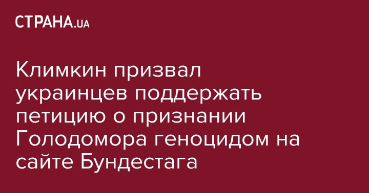 Глава МИД Украины Павел Климкин призвал всех украинцев подписать петицию с требованием признать Голодомор 1932 - 1933 годов геноцидом украинского народа. Документ размещен на сайте парламента Германии. Свое сообщение Климкин опубликовал в Facebook.
