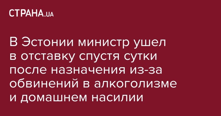 В Эстонии назначенный 29 апреля министр внешней торговли и информационных технологий Марти Куузик ушел в отставку после того, как его обвинили в домашнем насилии. Об этом пишет Delfi.