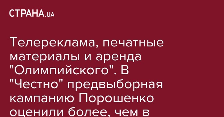 Телереклама, печатные материалы и аренда "Олимпийского". В "Честно" предвыборная кампанию Порошенко оценили более, чем в полмиллиарда