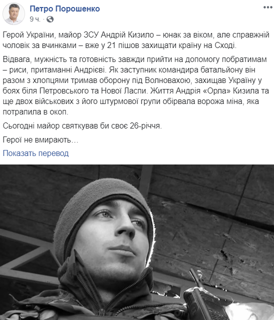 Так, Петр Порошенко вспомнил лишь о погибшем на Донбассе майоре ВСУ Андрее Кизило. Это его единственная запись за сегодняшний день.