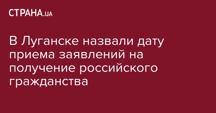 "Миграционная служба ЛНР" начнет принимать заявления жителей региона на получение российского гражданства с 6 мая. Об этом сообщает "РИА Новости" со ссылкой на представителя пресс-службы ведомства.