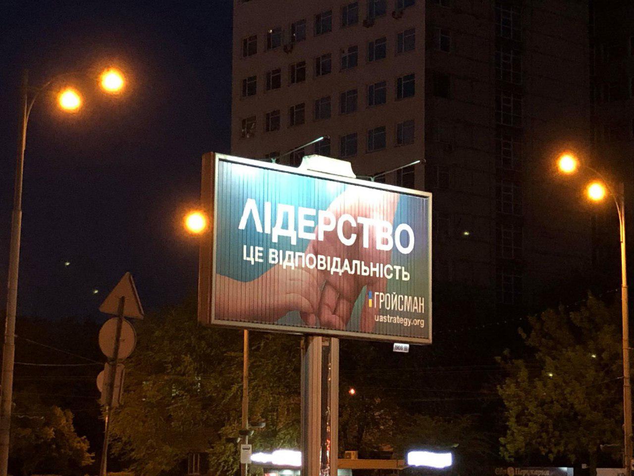 В Киеве начали появляться билборды с надписью "Лидерство - это ответственность", подписанные фамилией премьер-министра Украины Владимира Гройсмана.