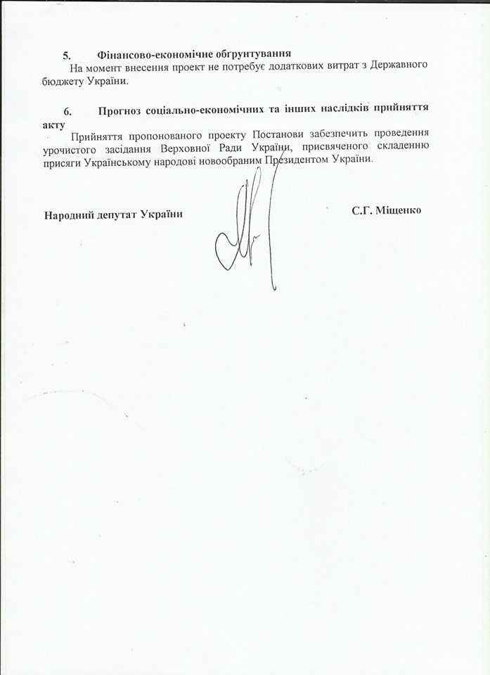 Мищенко напомнил, что присяга украинскому народу является обязательной для вступления в должность нового президента. Он отметил, что "представители нынешней пока действующей власти" делают всё возможное, чтобы отсрочить инаугурацию Владимира Зеленского.