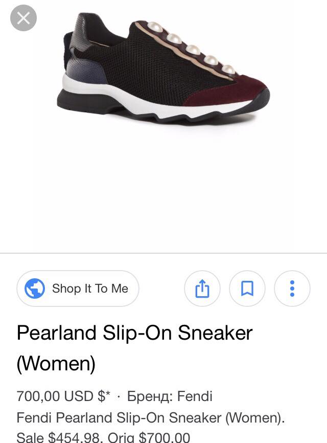 Также нам удалось рассмотреть на Ирине Луценко необычные кроссовки с жемчужинами. Как оказалось, это сникеры (кроссовки на резиновой подошве) итальянского дома Fendi. Такие оригинальные брендовые кеды стоят $700 или 18700 грн по курсу НБУ на 04.05.2019 года.