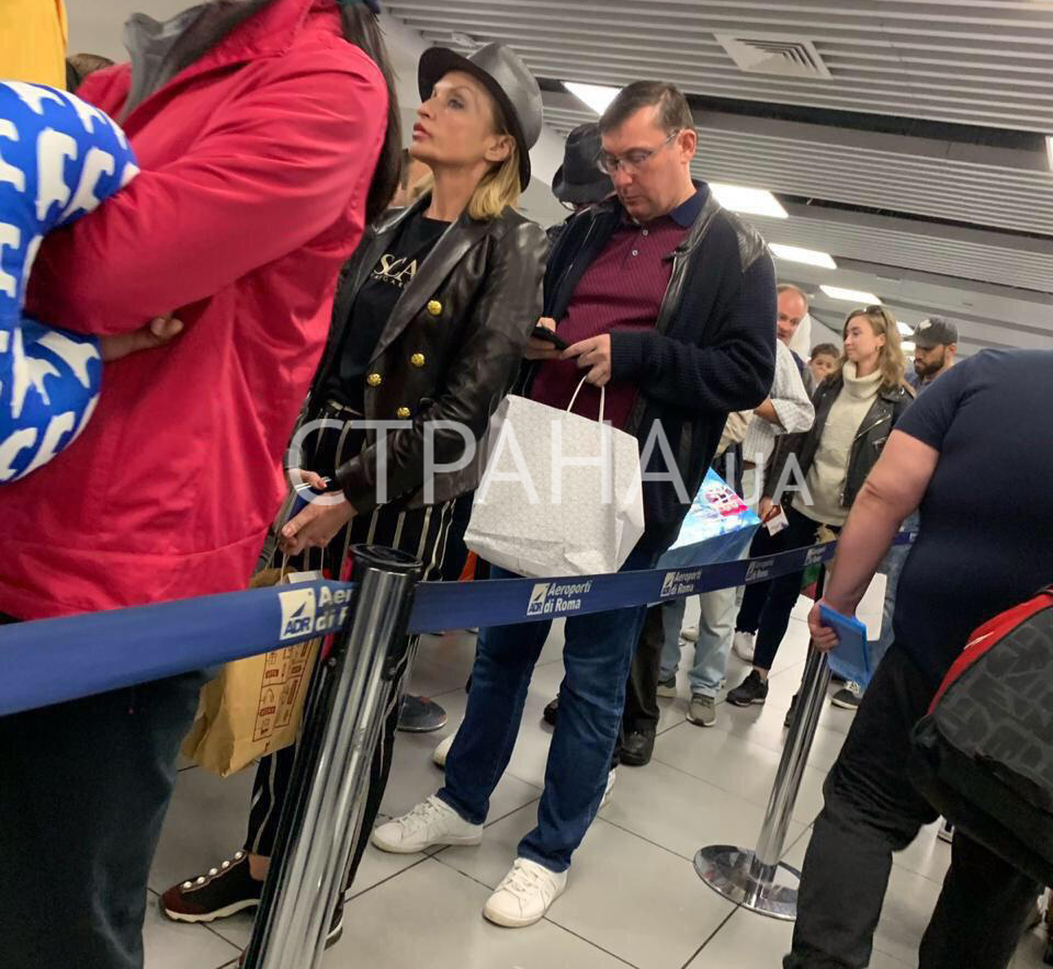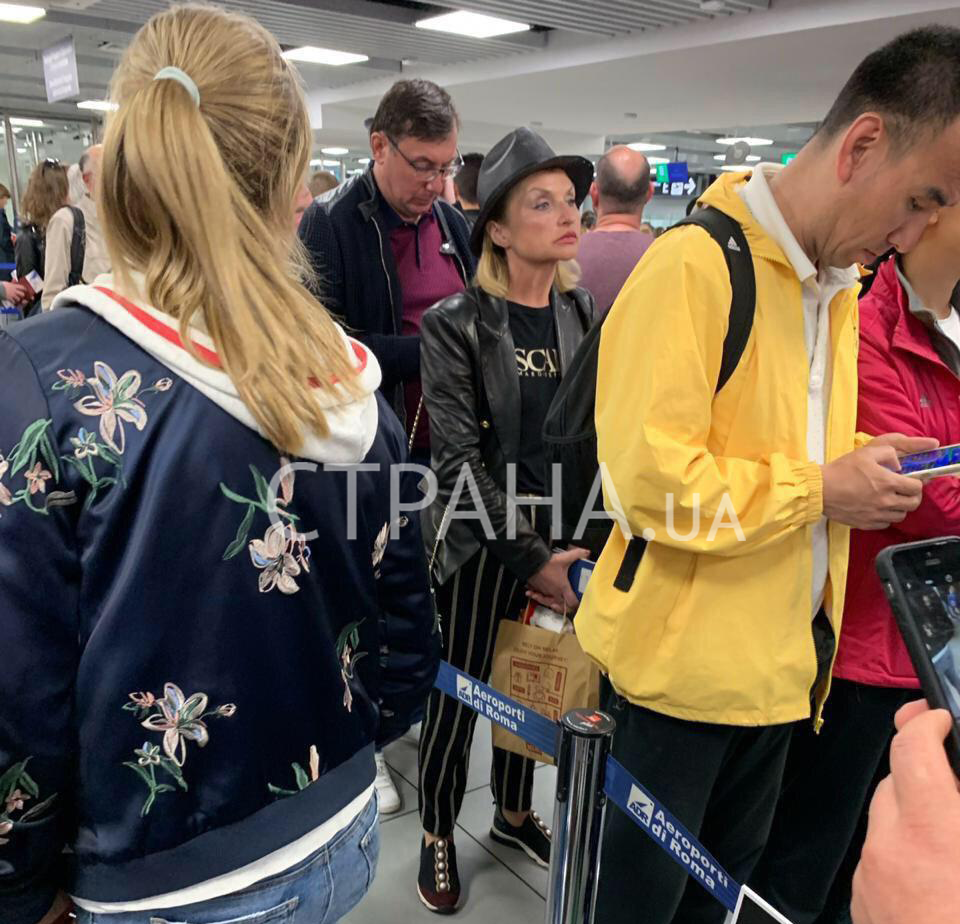 На снимках изображены генпрокурор Юрий Луценко, его супруга - народный депутат Ирина, а также младший сын Виталий. По информации наших собеседников, данные фото были сделаны вечером 3 мая в международном аэропорту Фьюмичино имени Леонардо да Винчи во время прохождения регистрации. Борт с четой Луценко на борту приземлился в Киеве около 01:00 4 мая.