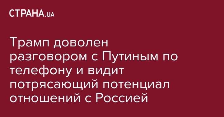 "Вчера был очень хороший телефонный разговор с президентом России Путиным. Есть потрясающий потенциал для хороших или даже – отличных отношений с Россией, несмотря на все то, что вы читаете и видите в новостях от фейковых СМИ", - написал он.