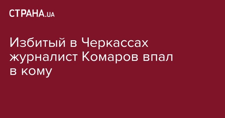 Черкасский журналист Вадим Комаров, которого до полусмерти избили, после проведенной операции впал в кому. Об этом в Facebook сообщил депутат Черкасского городского совета Александр Радуцкий .