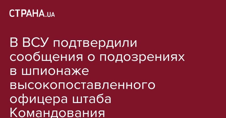 В ВСУ подтвердили сообщения о подозрениях в шпионаже высокопоставленного офицера штаба Командования