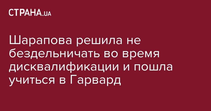 Российская теннисистка Мария Шарапова, дисквалифицированная на два года за употребление мельдония, поступила в Гарвардскую школу бизнеса. Об этом спортсменка сообщила в своем Twitter.