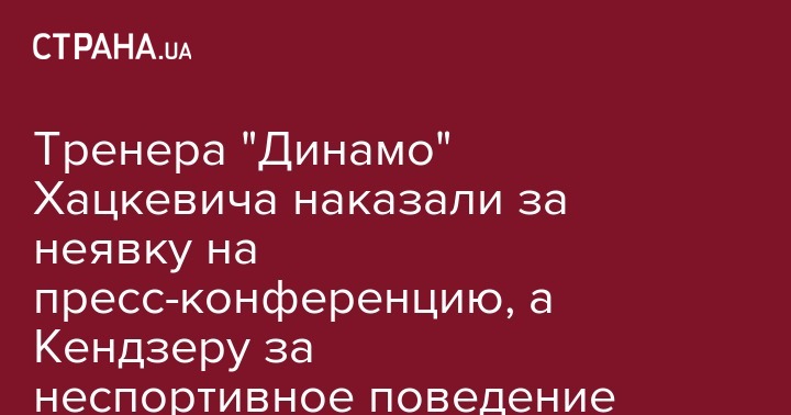 Тренера "Динамо" Хацкевича наказали за неявку на пресс-конференцию, а Кендзеру за неспортивное поведение