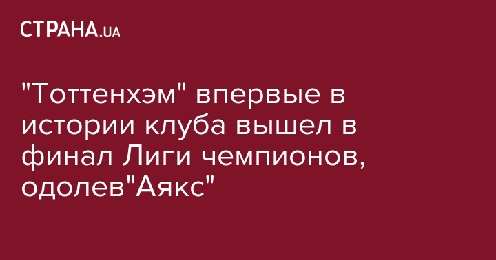 Английский футбольный клуб "Тоттенхэм" стал вторым финалистом Лиги чемпионов. В ответном матче 1/2 финала английский клуб на выезде обыграл "Аякс" и вышел в финал, где его соперником станет английский "Ливерпуль"