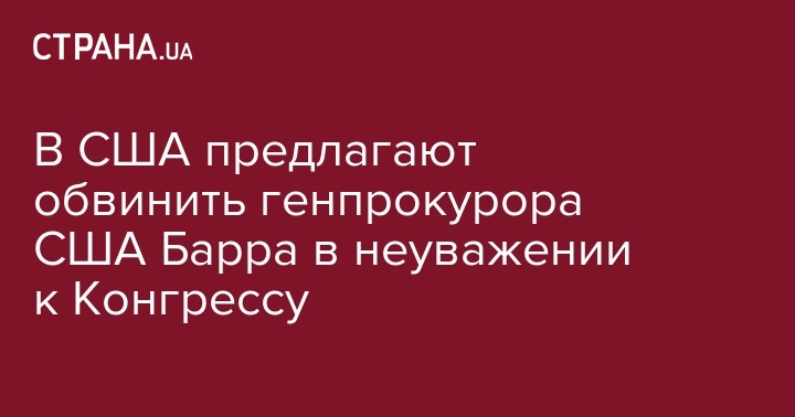 Члены юридического комитета Палаты представителей США в среду проголосовали за то, чтобы рекомендовать обвинить генпрокурора страны Уильяма Барра в неуважении к Конгрессу, передает телеканал CNN.