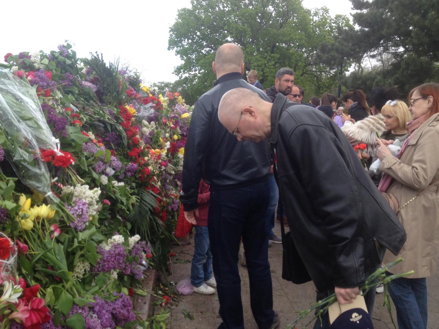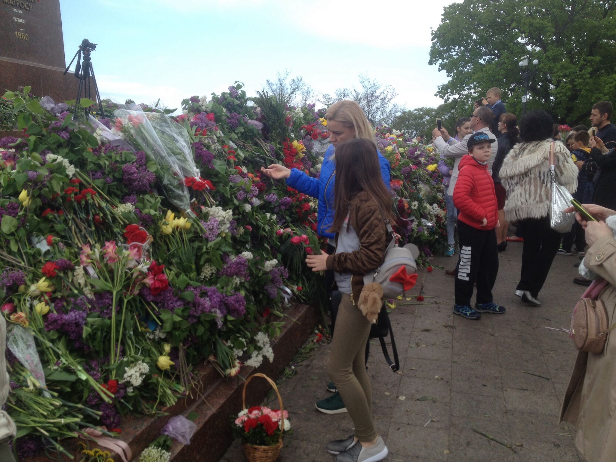 14:48 В Одессе у памятника Неизвестному Матросу море цветов. Судя по фото - в человеческий рост. Фото "Страны".